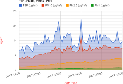 Dust sample data is stored securely at the airqweb.co.uk site and can be searched and viewed there. The data can be displayed in variety of graph formats, as well as on a map by instrument location. Reports can be prepared, and data exported in convenient formats. It is also possible to control the instruments – start & stop sampling, change settings and set alerts.