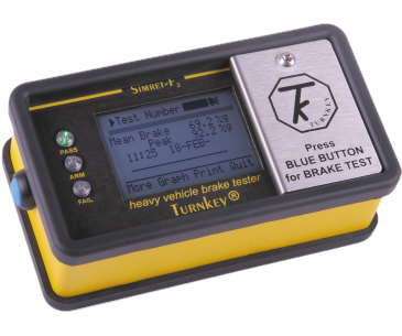 Simret F2 allows drivers to test their vehicles' brake performance during the working shift. The driver presses a single button, accelerates to the recommended test speed and brakes to stop†. Simret F2 calculates the brake performance and lights green for a pass or a red for fail.