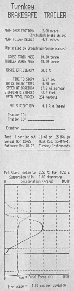 Sample printout from Agricultural BrakeSafe